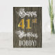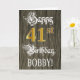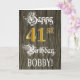 Le recto de cette carte de voeux fantaisie et luxueuse à thème d'anniversaire comporte le message "Joyeux 41e anniversaire", ainsi qu'un nom de destinataire personnalisé. Une partie du message est en texte de style script élaboré. Le grand numéro "41st" présente un motif de look imitation or/imitation. L'arrière - plan a un motif imitation/imitation bois inspiré des grains. L'intérieur a un message de voeux d'anniversaire modifiable, ou peut-être peut-être être effacé et laissé vide si un message doit être écrit à la main à la place. Une carte de voeux élégante et modifiable comme celle-ci pourrait être envoyée pour célébrer le quarante et unième anniversaire de quelqu’un. [~Z0000561]