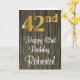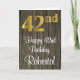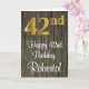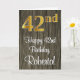 Ce design élégant, sophistiqué et luxueux de carte de voeux d'anniversaire comprend un grand numéro ordinal "42e" avec un motif dégradé d'inspiration fausse/imitation or, en plus du message de voeux d'anniversaire "Happy 42e anniversaire", et un nom personnalisable dans une police de style script sur le devant. Il a également un faux motif arrière - plan d'inspiration bois sur le devant. L'intérieur a un message de voeux d'anniversaire personnalisé, ou peut-être peut-être être effacé et laissé vide si un message doit être écrit à la main à la place. Une carte de voeux d'anniversaire élégante et modifiable comme celle-ci pourrait être une façon amusante de livrer des voeux d'anniversaire à quelqu'un qui célèbre son quarante-deuxième anniversaire. [~Z0000519]
