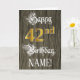 Le recto de cette carte de voeux élaborée et élégante à thème d'anniversaire comporte le message "Happy 42nd Birthday", ainsi qu'un nom de destinataire personnalisable. Une partie du message est en texte de type script formel. Le grand numéro "42nd" présente un motif de look imitation or/imitation. L'arrière - plan a un motif imitation/imitation bois inspiré des grains. L'intérieur a un message de voeux d'anniversaire customisé, ou peut-être peut-être être effacé et laissé vide si un message doit être écrit à la main à la place. Une carte de voeux d’anniversaire luxueuse et personnalisée comme celle-ci pourrait être utilisée pour souligner le quarante-deuxième anniversaire de quelqu’un. [~Z0000561]