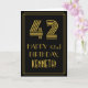 La façade de cette carte de voeux inspirée des années 1920-1930 et de style vintage, sur le thème de l'anniversaire, comporte un grand numéro de style Art déco inspiré "42", le message "HAPPY 42nd BIRTHDAY", un nom personnalisé et un motif de bordure constitué de lignes. L'intérieur comporte un message de salutation d'anniversaire modifiable, ou peut-être pourrait-il être effacé et laissé vide si un message doit être écrit à la main à la place. Une carte d’anniversaire personnalisée comme celle-ci pourrait être une façon amusante de reconnaître le quarante-deuxième anniversaire de quelqu’un. [~Z0000394]