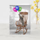 Chat tabby en bois debout sur un rocking chair et tendant vers un bouquet de ballon coloré pour 43ème anniversaire. Le numéro d'âge peut être modifié.