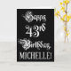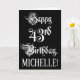 Le devant de cette carte de voeux d'anniversaire formelle et fantaisiste comporte le message "Happy 43rd Birthday", en texte de script élaboré, sur un arrière - plan de couleur noire. L'intérieur a un message de voeux d'anniversaire personnalisable, ou peut-être peut-être être effacé et laissé vide si un message doit être écrit à la main à la place. Une carte de voeux d’anniversaire luxueuse et personnalisée comme celle-ci pourrait être utilisée pour souligner le quarante-troisième anniversaire de quelqu’un. [~Z0000554]