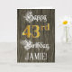 Le recto de cette carte de voeux à thème d'anniversaire formelle et élégante comporte le message "Joyeux 43e anniversaire", ainsi qu'un nom de destinataire personnalisé. Une partie du message est dans un texte élaboré de style script, le grand numéro "43ème" présente un faux/imitation motif de look d'inspiration or, et l'arrière - plan a un faux/imitation motif d'inspiration bois. L'intérieur a un message de voeux d'anniversaire personnalisé, ou peut-être peut-être être effacé et laissé vide si un message doit être écrit à la main à la place. Une carte de voeux d’anniversaire de style fantaisie et personnalisable comme celle-ci pourrait être envoyée pour célébrer le quarante-troisième anniversaire de quelqu’un. [~Z0000561]