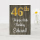 Ce design élégant, sophistiqué et élégant de carte de voeux d'anniversaire comporte un grand numéro ordinal "46th" avec un motif dégradé d'inspiration fausse/imitation or, ainsi que le message de voeux d'anniversaire "Happy 46th Birthday", et un nom personnalisé dans une police de style script sur le devant. Il a également un faux motif arrière - plan d'inspiration bois sur le devant. L'intérieur a un message d'anniversaire personnalisé, ou peut-être peut-être être effacé et laissé vide si un message doit être écrit à la main à la place. Une carte de voeux d'anniversaire personnalisée de luxe comme celle-ci pourrait être une façon amusante de délivrer des voeux d'anniversaire à quelqu'un qui célèbre son quarante-sixième anniversaire. [~Z0000519]