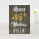 Le recto de cette carte de voeux à thème d'anniversaire formelle et élégante comporte le message "Joyeux 46e anniversaire", ainsi qu'un nom de destinataire personnalisé. Une partie du message est en texte de style script élaboré. Le grand numéro "46th" présente un motif de look imitation or/imitation. L'arrière - plan a un motif imitation/imitation bois inspiré des grains. L'intérieur a un message d'anniversaire personnalisé, ou peut-être peut-être être effacé et laissé vide si un message doit être écrit à la main à la place. Une carte de voeux d'anniversaire ornée et modifiable comme celle-ci pourrait être un moyen respectable de livrer des voeux d'anniversaire à quelqu'un qui célèbre son quarante-sixième anniversaire. [~Z0000561]