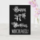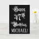 Le devant de cette carte de voeux d'anniversaire ornée et élaborée comprend le message "Happy 47th Birthday", en texte somptueux de style script, sur un arrière - plan de couleur noire. L'intérieur a un message d'anniversaire personnalisé, ou peut-être peut-être être effacé et laissé vide si un message doit être écrit à la main à la place. Une carte de voeux d’anniversaire personnalisée et sophistiquée comme celle-ci pourrait être utilisée pour souligner le quarante-septième anniversaire de quelqu’un. [~Z0000554]