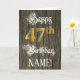 Le recto de cette carte de voeux ornée et fantaisiste d'anniversaire comporte le message "Joyeux 47e anniversaire", ainsi qu'un nom de destinataire modifiable. Une partie du message est dans un texte élégant de style script, le grand numéro "47th" dispose d'un faux/imitation motif de look d'inspiration or, et l'arrière - plan a une imitation/faux motif d'inspiration bois. L'intérieur a un message d'anniversaire personnalisé, ou peut-être peut-être être effacé et laissé vide si un message doit être écrit à la main à la place. Une carte de voeux d'anniversaire officielle et modifiable comme celle-ci pourrait être un moyen respectable de livrer des voeux d'anniversaire à quelqu'un qui célèbre son quarante-septième anniversaire. [~Z0000561]