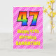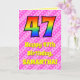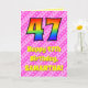 L'avant de cette carte de voeux à thème de 47e anniversaire joyeuse et amusante comprend un grand nombre de "47" ayant un motif coloré à l'arc-en-ciel inspiré du spectre dégradé. Il contient également le message "Joyeux 47e anniversaire", ainsi qu'un nom de destinataire personnalisable. L'arrière - plan de l'avant présente un joyeux motif de rayures rose foncé et rose clair, aux coeurs roses aimés. L'intérieur comporte un message de voeux d'anniversaire modifiable, ou peut-être pourrait-il être effacé et laissé vide si un message doit être écrit à la main à la place. Une carte d'anniversaire personnalisable comme celle-ci pourrait être une façon amusante d'envoyer des voeux d'anniversaire à quelqu'un qui célèbre son quarante-septième anniversaire. [~Z0000416]