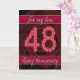 carte 48e anniversaire avec roses et feuilles