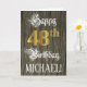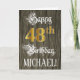 Le recto de cette carte de voeux d'anniversaire ornée et officielle comporte le message "Joyeux 48e anniversaire", ainsi qu'un nom de destinataire personnalisé. Une partie du message est en texte de style script sophistiqué. Le grand numéro "48th" présente un motif de look imitation or. L'arrière - plan a un motif imitation/imitation bois inspiré des grains. L'intérieur a un message de voeux d'anniversaire customisé, ou peut-être peut-être être effacé et laissé vide si un message doit être écrit à la main à la place. Une carte de voeux d’anniversaire de luxe et personnalisable comme celle-ci pourrait être envoyée pour célébrer le quarante-huitième anniversaire de quelqu’un. [~Z0000561]