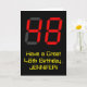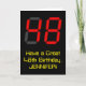 L'avant de cette carte de voeux ridicule et amusante à thème d'anniversaire comporte un grand nombre de "48" ayant une apparence rouge à sept segments d'affichage numérique inspiré, ainsi que le message "Avoir un grand 48e anniversaire", et un nom modifiable, sur un arrière - plan de couleur noire. L'intérieur comporte un message de voeux d'anniversaire personnalisable, ou peut-être pourrait-il être effacé et laissé vide si un message doit être écrit à la main à la place. Une carte d'anniversaire personnalisée comme celle-ci pourrait être une façon amusante d'envoyer des voeux d'anniversaire à quelqu'un qui célèbre son quarante-huitième anniversaire. [~Z0000386]