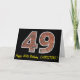 Le devant de cette carte de voeux d'anniversaire a un grand numéro "49" avec un motif de mur en brique rouge brunâtre, avec le message "Happy 49th Birthday," et un nom personnalisé. L'intérieur comporte un message de voeux d'anniversaire customisé, ou peut-être pourrait-il être effacé et laissé vide si un message doit être écrit à la main à la place. Une carte d'anniversaire personnalisée comme celle-ci pourrait être une façon amusante d'envoyer des voeux d'anniversaire à quelqu'un qui célèbre son quarante-neuvième anniversaire. [~Z0000399]
