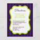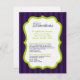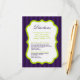 Cette carte d'itinéraire pour la réception et la cérémonie Ashley 4x5 Sized Lime Green & Purple Stripe est parfaite pour tout couple à placer à l'intérieur de leurs invitations de mariage pour que leurs destinataires aient des instructions pour la cérémonie et l'endroit où se tient la réception. Ceux-ci sont fournis avec des enveloppes blanches standard mais vous pouvez simplement les jeter car vos invités n'en auront pas besoin.