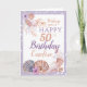 Une belle carte de 50ème anniversaire avec des coquillages et des coraux de plage nautiques, des cordes de lumières et une bordure violette pâle. La carte idéale pour ceux qui fêtent un anniversaire marquant. Customisez en changeant le numéro puis personnalisez avec un nom et un message qui se lit actuellement "Voici un toast à vos 50 années extraordinaires sur terre. Tu as répandu tant de joie, d'émerveillement et d'amour. Puissiez-vous vivre les 50 prochaines années votre façon spéciale. Joyeux 50ème anniversaire ! Une belle carte pour tout âge.
