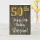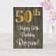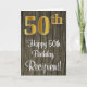 Ce design élégant, sophistiqué et élégant de carte de voeux d'anniversaire comprend un grand numéro ordinal "50e" avec un motif dégradé imitation/faux d'inspiration or, plus le message de voeux d'anniversaire "Happy 50e anniversaire", et un nom personnalisable dans une police de style script sur le devant. Il a également un faux motif arrière - plan d'inspiration bois sur le devant. L'intérieur a un message de voeux d'anniversaire customisé, ou peut-être peut-être être effacé et laissé vide si un message doit être écrit à la main à la place. Une luxueuse carte de voeux d'anniversaire modifiable comme celle-ci pourrait être une façon amusante de livrer des voeux d'anniversaire à quelqu'un qui célèbre son cinquantième anniversaire. [~Z0000519]