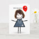 Carte 50e Anniversaire Stick Figure Girl avec Ballons Ro