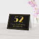 Ce design de carte de voeux d'anniversaire, inspiré et vintage des années folles, comprend un grand style art déco inspiré du numéro "52", le message "Happy 52nd Birthday", un nom personnalisable, et un motif de bordure composé de lignes fines sur le devant. L'arrière - plan du devant est noir de couleur. L'intérieur a un message de voeux d'anniversaire customisé, ou peut-être peut-être être effacé et laissé vide si un message doit être écrit à la main à la place. Une carte de voeux d’anniversaire personnalisée comme celle-ci pourrait être envoyée pour célébrer le cinquante-deuxième anniversaire de quelqu’un. [~Z0000463]