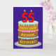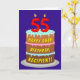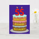 Le recto de cette carte de voeux à thème d'anniversaire amusante et optimisée présente une représentation d'un gâteau d'anniversaire à trois niveaux avec des bougies en forme de numéro sur le dessus montrant l'âge "55", avec le message "HAPPY 55TH BIRTHDAY", et un nom de destinataire modifiable. L'intérieur a un message de voeux d'anniversaire modifiable, ou peut-être peut-être être effacé et laissé vide si un message doit être écrit à la main à la place. Une carte de voeux d'anniversaire joyeuse et personnalisable comme celle-ci pourrait être une façon amusante d'envoyer un message d'anniversaire à quelqu'un qui célèbre son cinquante-cinquième anniversaire. [~Z0000620]