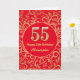 55e Anniversaire Carte d'Anniversaire Rouge et Or Floral. Pour plus de personnalisation, cliquez sur le bouton "Customiser" et utilisez notre outil de conception pour modifier ce modèle.