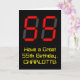 L'avant de cette conception de carte de voeux idiote et geeky d'anniversaire comporte un grand nombre de "55" avec un affichage numérique à sept segments rouge inspiré, ainsi que le message "Avoir un grand 55e anniversaire", et un nom personnalisable, sur un arrière - plan de couleur noire. L'intérieur comporte un message de voeux d'anniversaire personnalisable, ou peut-être pourrait-il être effacé et laissé vide si un message doit être écrit à la main à la place. Une carte d'anniversaire personnalisée comme celle-ci pourrait être une façon amusante d'envoyer des voeux d'anniversaire à quelqu'un qui célèbre son cinquante-cinquième anniversaire. [~Z0000386]