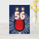 Un verre de vin d'anniversaire avec des bougies. Les bougies sont composées du numéro 56, pour un 56ème anniversaire. Les feux d'artifice explosent dans l'arrière - plan. Une carte d'anniversaire adaptée à tous, hommes ou femmes.