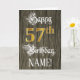 Le recto de cette carte de voeux luxueuse et fantaisie à thème d'anniversaire comporte le message "Joyeux 57e anniversaire", et un nom de destinataire modifiable. Une partie du message est dans un texte élégant de style script, le grand numéro "57th" dispose d'un faux/imitation motif de look d'inspiration or, et l'arrière - plan a un faux/imitation motif d'inspiration bois. L'intérieur a un message de voeux d'anniversaire personnalisable, ou peut-être peut-être être effacé et laissé vide si un message doit être écrit à la main à la place. Une carte de voeux d'anniversaire formelle et personnalisée comme celle-ci pourrait être une façon respectable d'envoyer un message d'anniversaire à quelqu'un qui célèbre son cinquante-septième anniversaire. [~Z0000561]