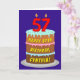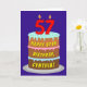 Carte 57e anniversaire : Gâteau et bougies amusants + No