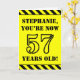Le devant de cette carte de voeux amusante et attirant l’attention sur le thème de l’anniversaire comporte un nom personnalisé et le message "VOUS AVEZ MAINTENANT 57 ANS !" en texte noir inspiré par un pochoir sur un arrière - plan de couleur jaune. L'avant est également orné d'un motif rayé noir et jaune accrocheur aux bords supérieur et inférieur. L'intérieur comporte un message de voeux d'anniversaire personnalisable, ou peut-être pourrait-il être effacé et laissé vide si un message doit être écrit à la main à la place. Une carte d'anniversaire personnalisée comme celle-ci pourrait être une façon amusante d'envoyer des voeux d'anniversaire à quelqu'un qui célèbre son cinquante-septième anniversaire. [~Z0000413]
