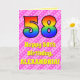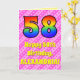 L'avant de cette carte de voeux joyeuse et festive de 58ème anniversaire a un grand numéro "58" avec un motif coloré inspiré du spectre arc-en-ciel. Il comporte également le message "Joyeux 58e anniversaire", et un nom de destinataire modifiable. L'arrière - plan de l'avant est doté d'un motif rayé rose clair et rose foncé, aux coeurs roses aimés. L'intérieur comporte un message d'anniversaire personnalisé, ou pourrait être effacé et laissé vide si un message doit être écrit à la main à la place. Une carte d’anniversaire personnalisée comme celle-ci pourrait être une façon amusante d’envoyer un message pour célébrer le cinquantehuitième anniversaire de quelqu’un. [~Z0000416]