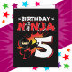 Cette conception ninja 5 anniversaire est un cadeau d'anniversaire parfait pour les garçons et les filles de cinq ans qui comme ninjas, karaté et autres arts martiaux. Grand cadeau de gardien d'anniversaire pour toujours se souvenir de vos enfants ninja thème fête d'anniversaire. Caractéristiques Ninjutsu symbole japonais & dessin animé style ninja karate kick graphique que ninja anniversaire 5 ans garçon ou fille va AIMER!