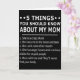 Carte 5 Things You Should Know About My Mom Tee Shirt Gi