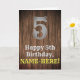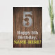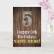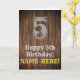Ce look de pays et la conception de carte de voeux d'anniversaire d'inspiration américaine Wild West comprend un grand look rustique numéro "5", le message "Happy 5th Birthday," un nom personnalisé, et un faux/imitation grain de bois inspiré motif arrière - plan. L'intérieur a un message de voeux d'anniversaire personnalisable, ou peut-être peut-être être effacé et laissé vide si un message doit être écrit à la main à la place. Une carte de voeux d’anniversaire modifiée comme celle-ci pourrait être envoyée pour célébrer le cinquième anniversaire de quelqu’un. [~Z0000469]
