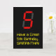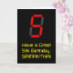 L'avant de cette carte de vœux d'anniversaire geek et amusante présente un grand chiffre "5" avec une apparence d'affichage numérique à sept segments rouges, ainsi que le message "Joyeux 5ème anniversaire" et un nom personnalisable, sur un fond de couleur noire. L'intérieur comporte un message d'anniversaire personnalisé ou pourrait éventuellement être laissé en blanc si un message doit être écrit à la main à la place. Une carte d'anniversaire personnalisable comme celle-ci pourrait être une façon amusante d'envoyer un message pour célébrer le cinquième anniversaire de quelqu'un.