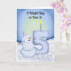 Celebrate a child’s fifth birthday with this delightful winter illustration featuring a cheerful snowman proudly admiring the big snowy “5” he has just built. Snowballs are scattered around the base of the number, adding playful texture to the scene, while soft winter flowers bring a gentle, seasonal touch. The cozy colors and whimsical details make this design perfect for little ones who love winter magic. Add the child’s name at the bottom to create a personalized 5th birthday keepsake families will treasure.