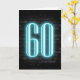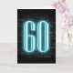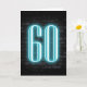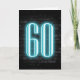 Panneau de néon turquoise brillant sur un mur de briques foncées pour un 60ème anniversaire.