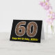 La façade de cette carte de voeux amusante et rustique d'anniversaire avec un grand nombre de "60" avec un motif de style imitation grain de bois, avec le message "Happy 60th Birthday," et un nom personnalisé. L'intérieur comporte un message de voeux d'anniversaire personnalisable, ou peut-être pourrait-il être effacé et laissé vide si un message doit être écrit à la main à la place. Une carte d'anniversaire personnalisée comme celle-ci pourrait être une façon amusante d'envoyer des voeux d'anniversaire à quelqu'un qui célèbre son soixantième anniversaire. [~Z0000431]