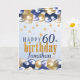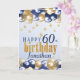 Une belle carte d'anniversaire de 60ème anniversaire. Cette belle carte comporte des ballons d'or et de marine. Peut être customisée pour n'importe quel âge et personnalisée en modifiant le nom et le message à l'intérieur duquel se lit actuellement "Joyeux anniversaire, Je vous souhaite un fabuleux 60ème anniversaire amusant!."