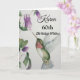Fêtez son 60e anniversaire avec un design élégant colibri sur une carte de voeux charmant. Créée à partir de ma peinture originale à l'aquarelle, cette jolie petite image d'oiseau et de fleurs ravira les amateurs d'ornithologie, de jardiniers et de nature. La femme spéciale dans votre vie adorera les couleurs pastel de crème, rose et vert turquoise peint dans le style doux réaliste de l'art botanique.