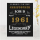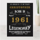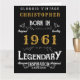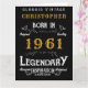 Say Happy 60th Birthday for those born in 1961 Add your name large birthday greeting card. Edit the name and year plus the inside with the template provided. A wonderful custom black birthday card with white and gold vintage style typographiy. This card is available in a giant size format for that really big surprise. More toxits and party available with the Legendary design in the store.