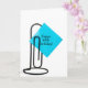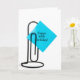 Aqua blue paper with 60th birthday message on giant black paper clip isolated on white.
