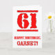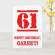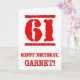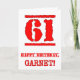 Ce design amusant de carte de voeux d'anniversaire comporte un grand numéro rouge "61" ayant une apparence inspirée par un timbre en caoutchouc, ainsi que le message de voeux d'anniversaire "HAPPY BANTHDAY", et un nom personnalisable sur le devant. L'intérieur a un message de voeux d'anniversaire personnalisé, ou peut-être peut-être être effacé et laissé vide si un message doit être écrit à la main à la place. Une carte de voeux d'anniversaire personnalisable comme celle-ci pourrait être une façon amusante d'envoyer des voeux d'anniversaire à quelqu'un qui célèbre son soixante et unième anniversaire. [~Z0000524]