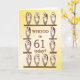 Carte de 61e anniversaire. Des chouettes curieux tournent la tête pour vous regarder et vous demander "Qui a un anniversaire aujourd'hui ?". Une drôle de carte d'anniversaire pour tous ceux qui aiment les chouettes. Les hiboux montrés sont des hiboux de grange.