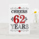Une carte d'anniversaire qui est un choix parfait et joyeux pour toute personne que vous connaissez qui célébrera son 62e anniversaire.