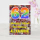 La façade de cette carte de voeux d'anniversaire colorée, sur le thème de l'automne et rustique comporte un grand numéro "62" avec un motif inspiré par un gradient de spectre arc-en-ciel, ainsi que le message "Happy 62nd Birthday", et un nom personnalisé. L'avant est ornée d'un arrière - plan représentant des feuilles d'automne tombées rustiques. L'intérieur comporte un message de voeux d'anniversaire personnalisable, ou peut-être pourrait-il être effacé et laissé vide si un message doit être écrit à la main à la place. Une carte d'anniversaire personnalisable comme celle-ci pourrait être une façon amusante d'envoyer des voeux d'anniversaire à quelqu'un qui célèbre son soixante-deuxième anniversaire. [~Z0000384]