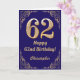 62e anniversaire Marine Blue and Gold Parties scintillant Frame. Pour plus de personnalisation, cliquez sur le bouton "Customiser" et utilisez notre outil de conception pour modifier ce modèle.