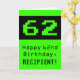 Carte 62e anniversaire : Nerdy / Geeky Style "62" et nom