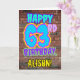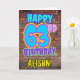 Le devant de cette carte de voeux amusante sur le thème de l'anniversaire comporte le message "HAPPY 63RD BIRTHDAY", avec une apparence vibrante, colorée, de graffitis et d'art urbain inspiré, ainsi qu'un nom de destinataire personnalisé. L'arrière - plan de l'avant est décoré d'un motif d'inspiration mural en brique. L'intérieur a un message de voeux d'anniversaire personnalisé, ou peut-être peut-être être effacé et laissé vide si un message doit être écrit à la main à la place. Une carte de voeux d’anniversaire amusante et personnalisée comme celle-ci pourrait être utilisée pour célébrer le soixante-troisième anniversaire de quelqu’un. [~Z0000531]