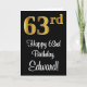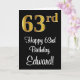 Carte 63e anniversaire ~ Elégant luxe Faux Gold Look #