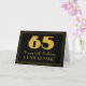 Ce design de carte de voeux inspiré et vintage du style des années 1920-1930 est doté d'un grand look art déco inspiré du numéro "65", du message "65ème anniversaire heureux", d'un nom personnalisé et d'un motif de frontière composé de lignes fines sur le front. L'arrière - plan du devant est noir de couleur. L'intérieur a un message d'anniversaire personnalisé, ou peut-être peut-être être effacé et laissé vide si un message doit être écrit à la main à la place. Une carte de voeux d’anniversaire personnalisée comme celle-ci pourrait être utilisée pour célébrer le soixante-cinquième anniversaire de quelqu’un. [~Z0000498]