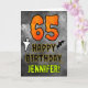 Le devant de cette carte de voeux d'anniversaire à thème Halloween éffrayant et effrayant comporte un grand nombre de "65". Il comporte également le message "HAPPY BANTHDAY", ainsi qu'un nom modifiable. Il y a aussi des représentations d'un fantôme et d'une chauve-souris sur le devant. L'intérieur comporte un message de voeux d'anniversaire modifiable, ou peut-être pourrait-il être effacé et laissé vide si un message doit être écrit à la main à la place. Une carte d’anniversaire personnalisable comme celle-ci pourrait être une façon amusante de reconnaître le soixante-cinquième anniversaire de quelqu’un qui tombe aussi sur Halloween (31 octobre). [~Z0000547]